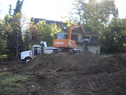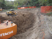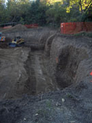 10/19/05 Here are pictures taken at the end of the third day. The cut is definitely getting deeper. You can see see more orange fence protecting a couple of trees on the back of the lot.