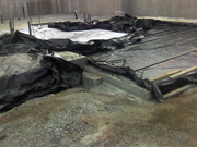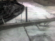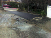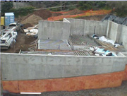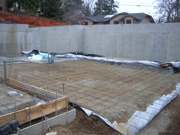 03/28/06 Not a lot of visible progress. These pictures were taken with my phone, so excuse the quality. The basement floor has been poured and is curing. You can really see the slope of the garage floor next to the level shop floor. At this point we could start framing, but the framing sub that our contractor wants to use won't be finished with the previous job for a couple more weeks. We're going to do some other things like run the conduit back to the transformer, pour the supports for the front porch, and maybe start some backfilling. The contractor for the house down the alley has paved the first 40 feet of the alley. We tried to have this wait until after we stopped driving trucks down the alley, but he is not very cooperative.
