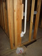 The central vacuum folks have run all of their tubing and wiring. When the sheetrock is on the walls, they will come back and install the central unit. It will be in the shop, close to the outdoor garbage cans. Also indoors, Elaine has been selecting moldings for around the doors and windows. Here is a picture of some mocked up around a doorway. The ones she chose are similar to these.