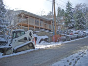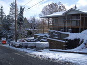 We didn't take many inside pictures in the month of November. Here are a couple of pictures taken the week after Thanksgiving after a snow storm. You can see pallets of blocks stacked in the street which will be used to make retaining walls along the alley. You can also see that some more progress has been made in front.