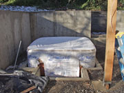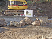 Lots of work outdoors. A crane came by this week and lifted the steel supports for the patio cover into place. While it was there, it also place the hot tub into its place outside the master bath. Having it set 18 inches down in the ground will make for easy access. They are just about ready to pour the patio floor. There is this amazing form that will leave channels in the surface for placing the brick accents. Work has also begun on the water feature. There are some serious boulders in the back yard that will be part of it. I think that the back and side fences will be going in soon as well.