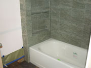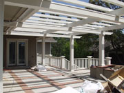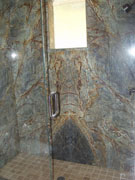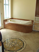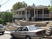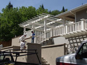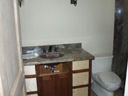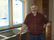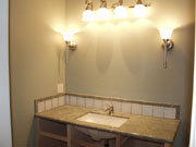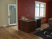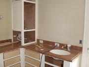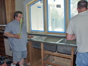 The last two pictures are of the kitchen sink being installed along with its Corian countertop. The Corian fabricator (in shorts) decided that Dick wasn't in any of the pictures so he took one. It is a wonderful sink--stainless steel, double bowls, each bowl large enough to lay a full sheetpan flat on the bottom.