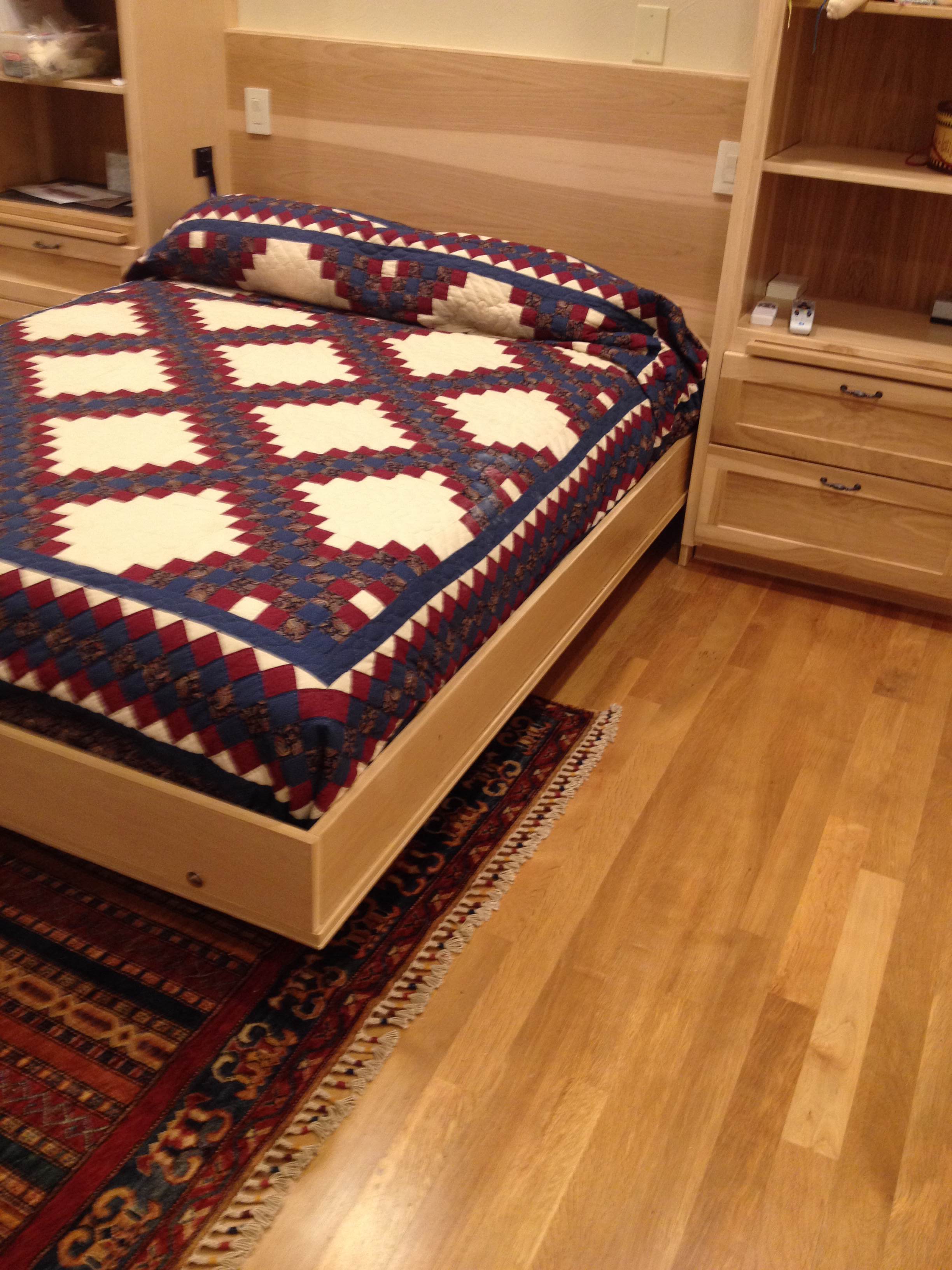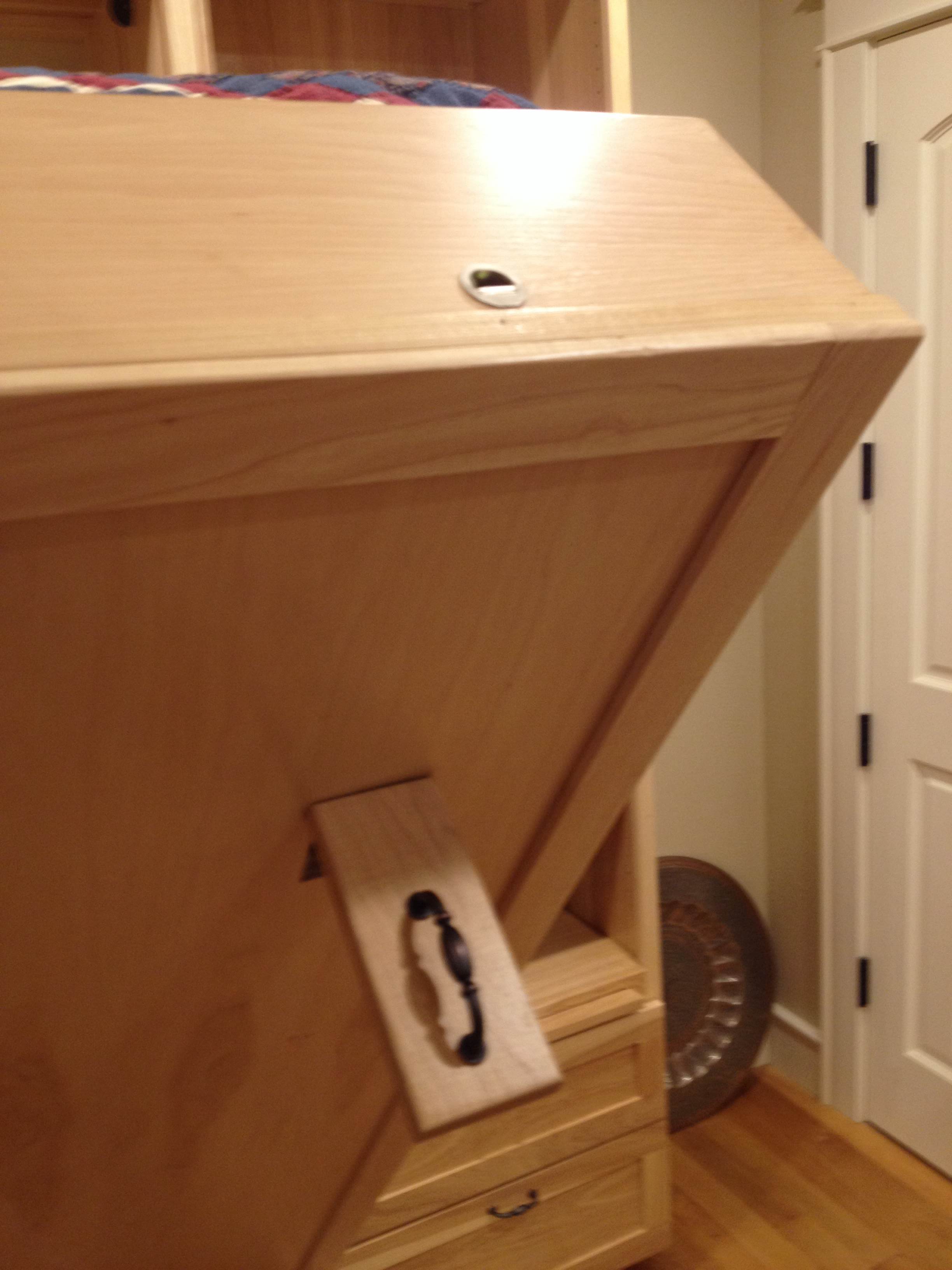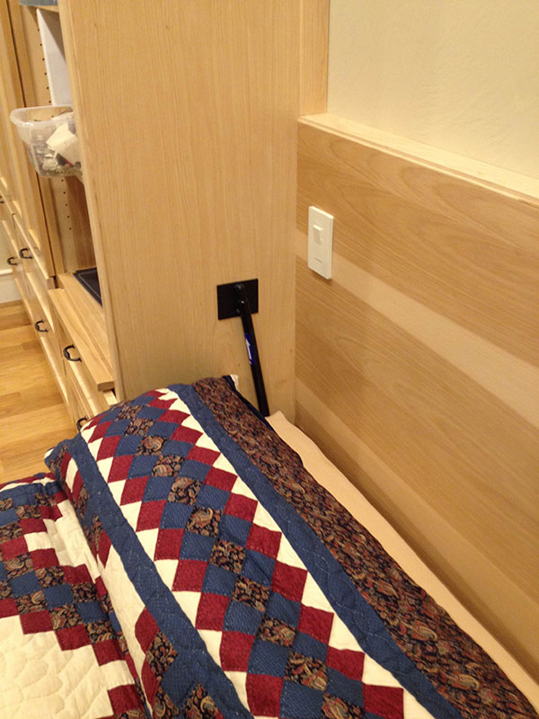 switchable and dimmable. The hardwood framing above the bed could have been a door,
