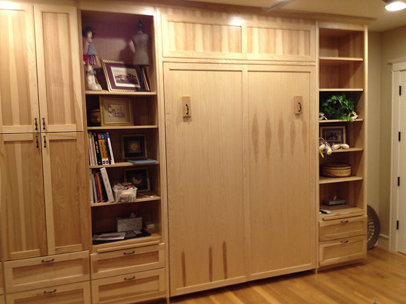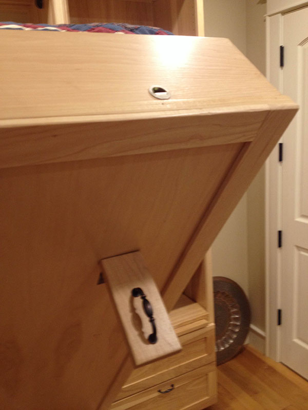 We use Elaine's sewing room as a secondary guest room, so it had a queen sized bed in it which was taking up a lot of space. I built a wall unit that gives her lots of room for storing her sewing supplies and contains a Murphy bed that can be lowered when we have guests.