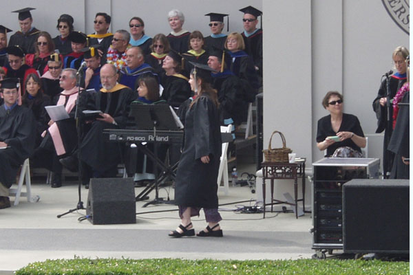 Walking across the stage to pick up "diploma"