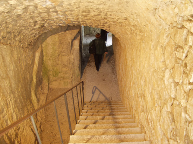 The narrow steps lead to the cell were the crown prince of Poland was kept prisoner for several years. The church at the top was recently rebuilt after being bombed by the Allies during WWII. It contains a gallery of watercolors of Sisteron.