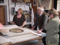 I tried to take his picture next to photos that Betty and I were thinking of buying, but didn't get him exposed all that well. Betty has better will power than I do. I went back that afternoon and bought the one on the right.